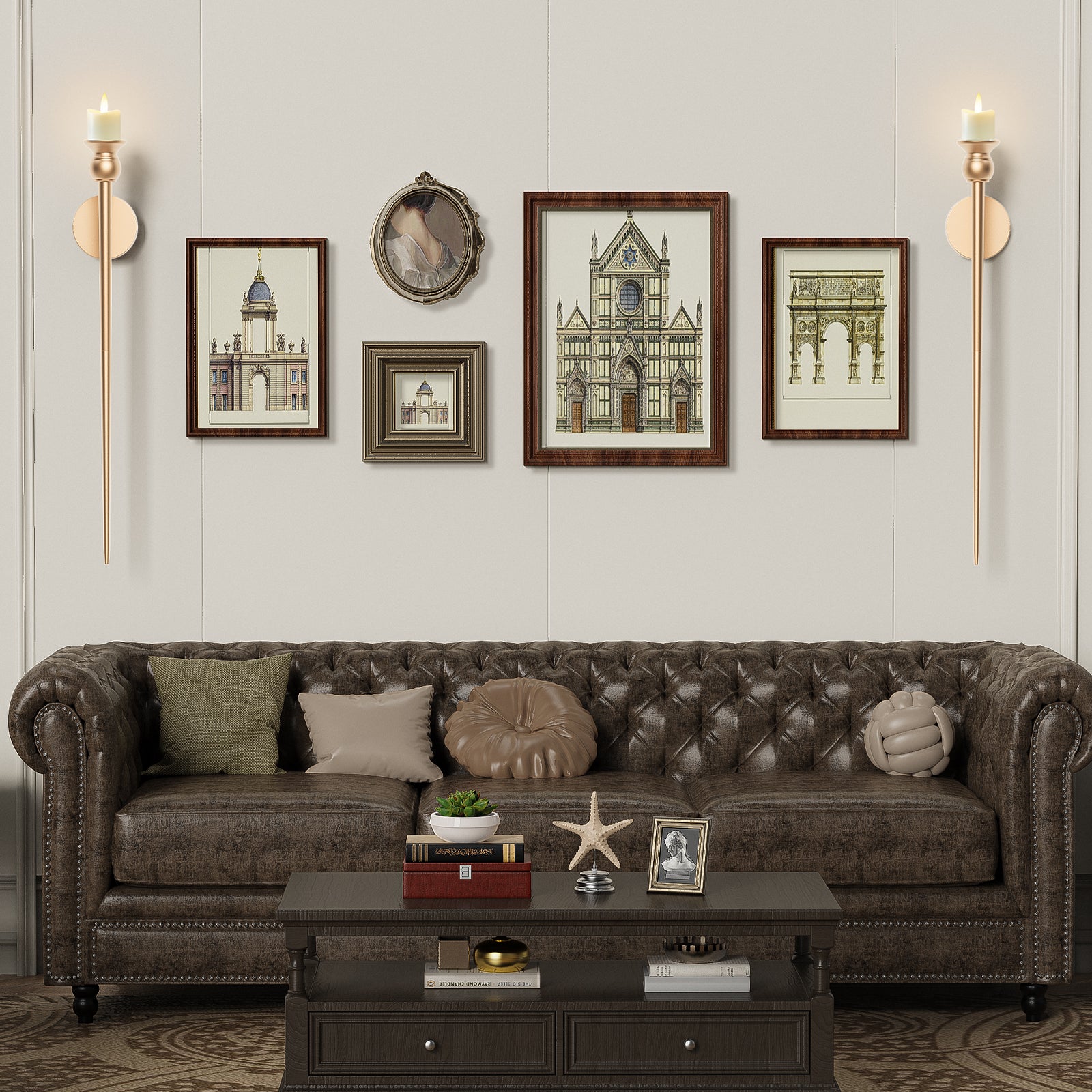 - Comes with Electronic Candle - The gold sconces wall decor comes with a matching rechargeable electronic candle, featuring a realistic flame effect for an authentic visual experience. Additionally, you can place real candles on the holder according to your preference.